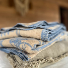 Koc tkany na krosnach. Celem właściwego ułożenia włosa zaleca się używanie przez dłuższy czas i dopiero wtedy wypranie koca.